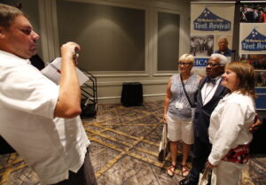 Bobby Cain poses for photos with teachers at the July 2017 TN History for Kids tent revival in Franklin