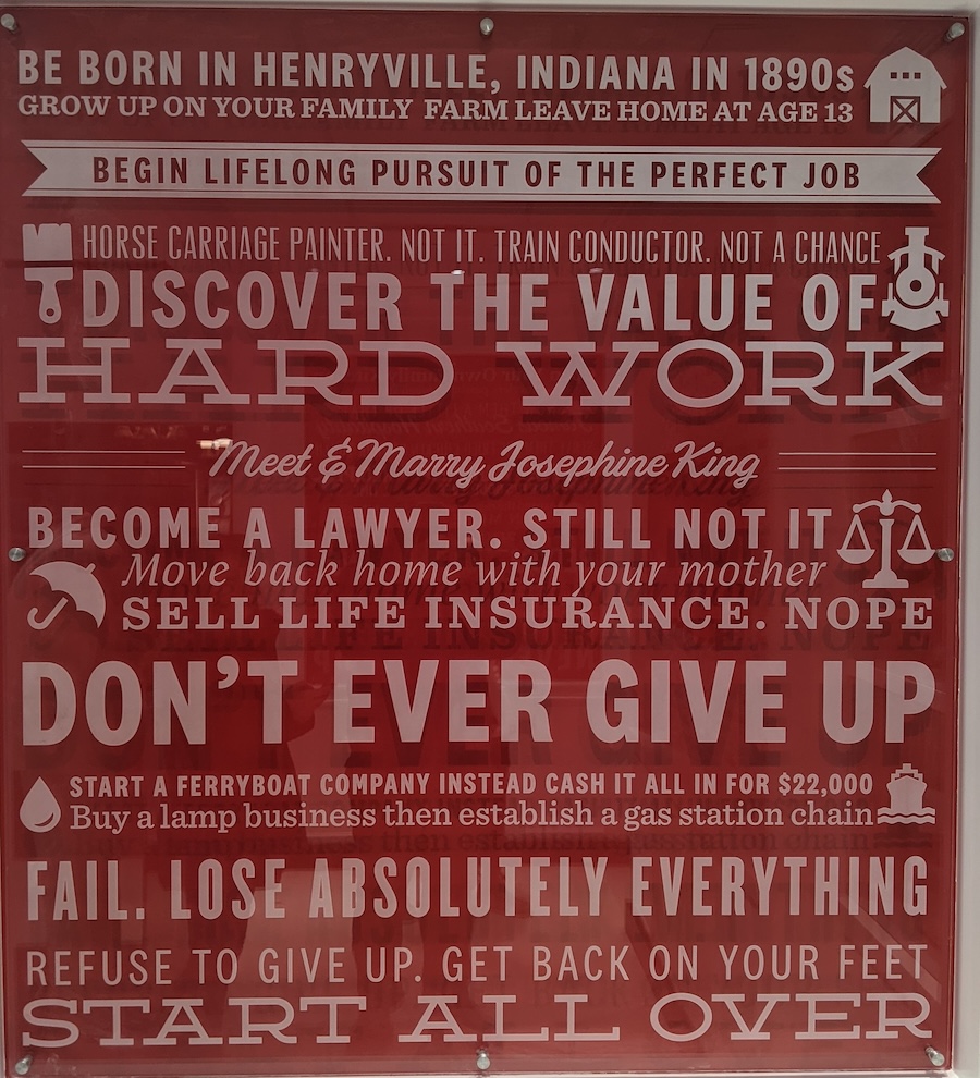 However, I have to admit that I learned a lot about the Colonel at his museum. In truth, Sanders had ever reason to believe that he was a failure. The museum explains how many jobs he went through before he started his fried chicken chain — ferry operator, train conductor, life insurance salesman, lawyer, and so on.